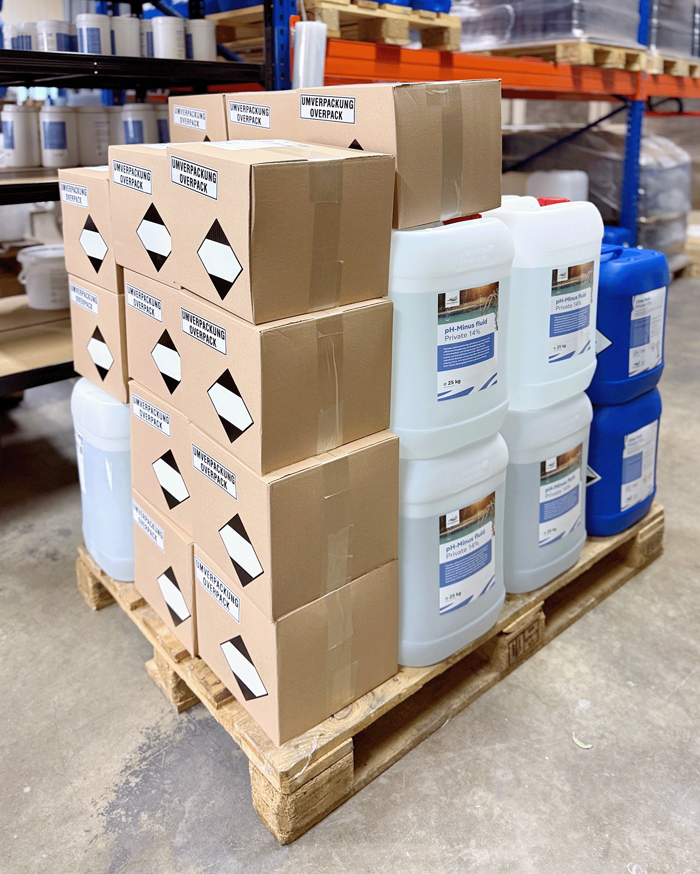 Als zuverlässiger Partner für Chlorprodukte und Wasseraufbereitungschemie übernehmen wir die komplette Logistik – von der Kommissionierung bis zum Versand.